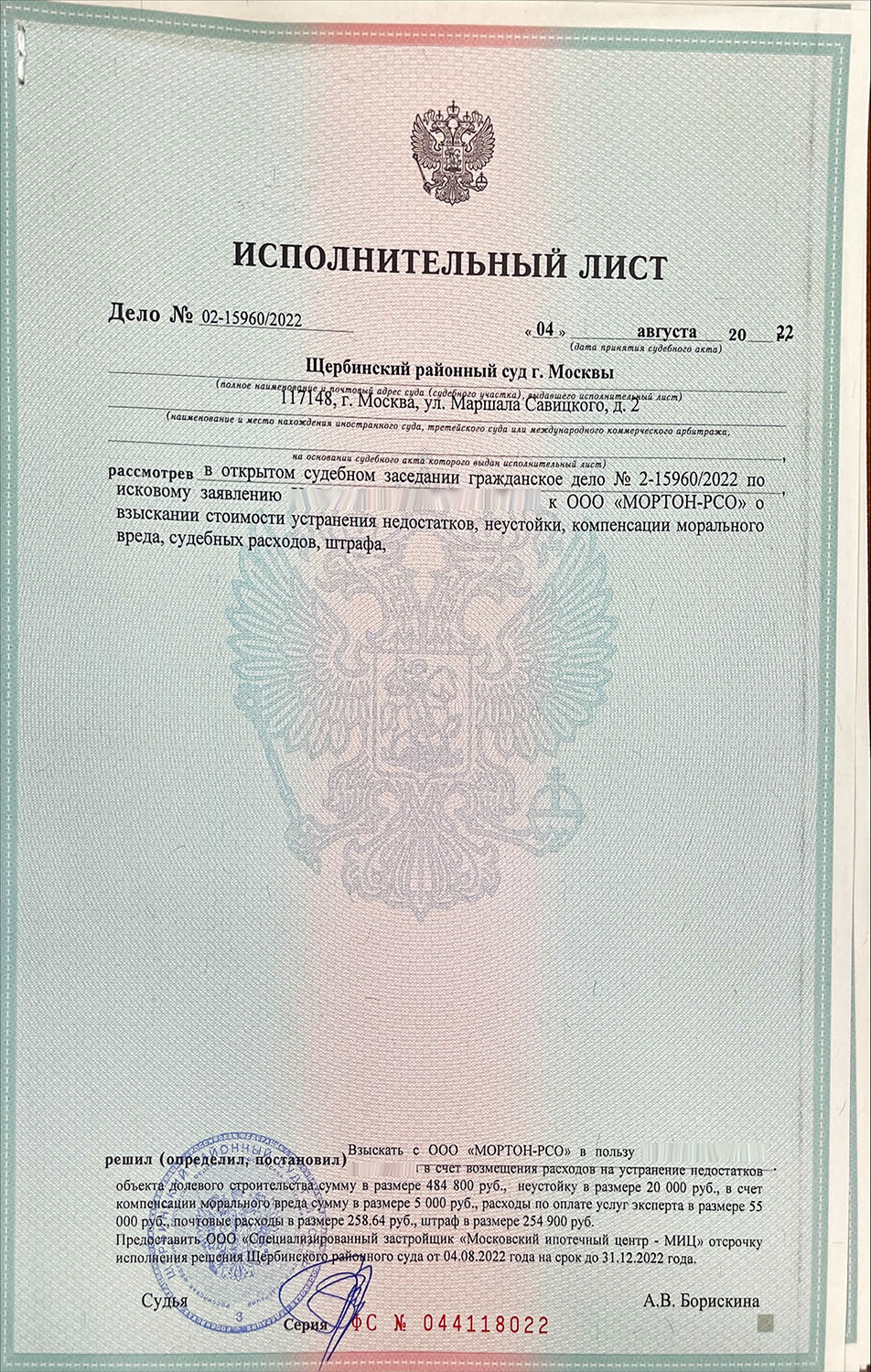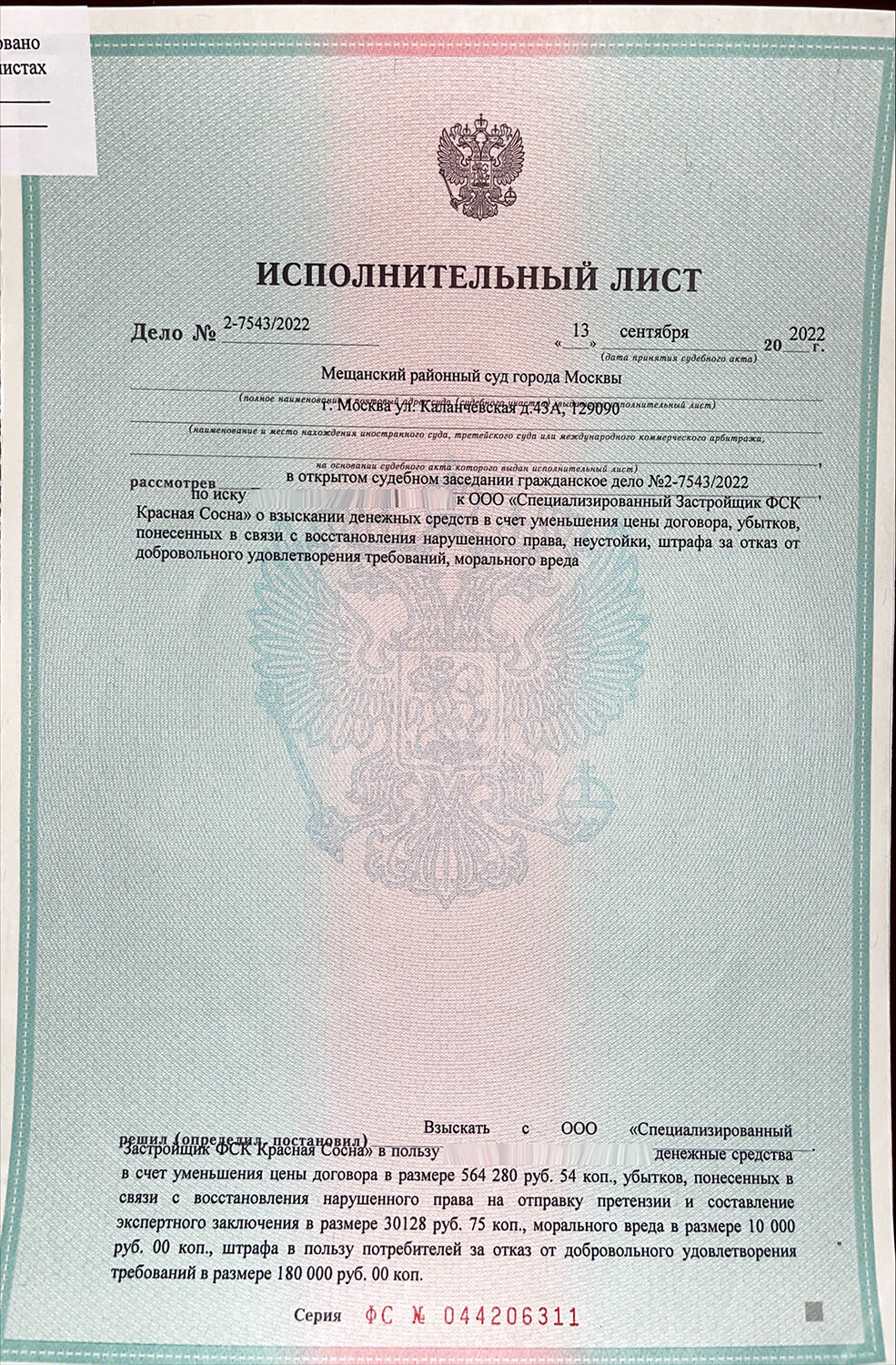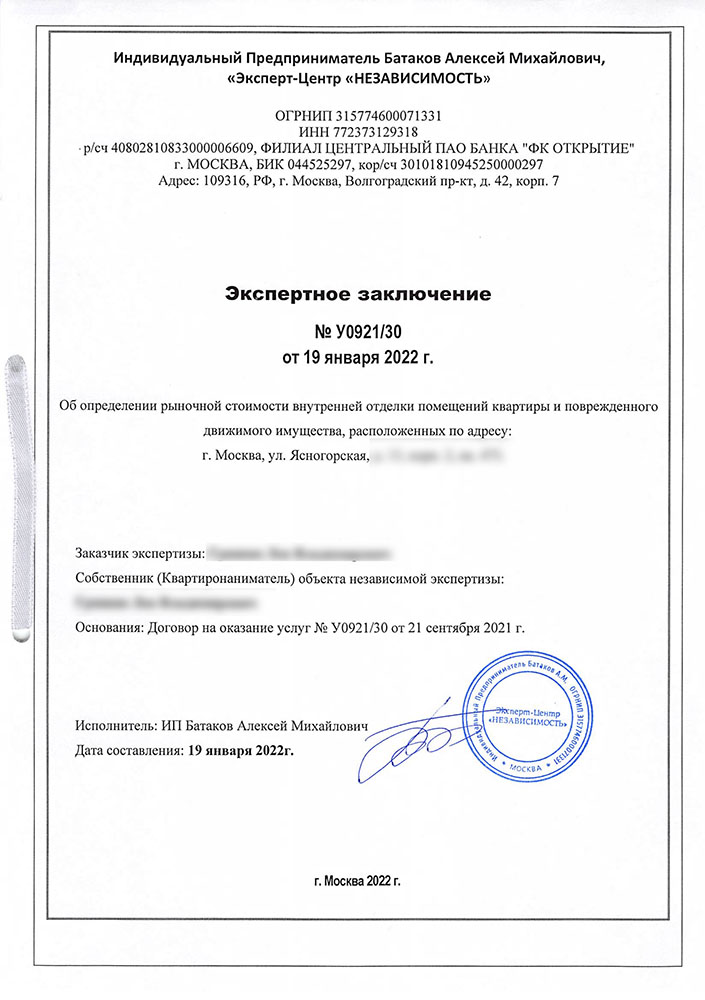 Мы сотрудничаем с профессиональными независимыми экспертами, обладающими всеми допусками. Эксперты без предоплаты проведут осмотр квартиры и составят заключение, которое юристы будут использовать в суде.