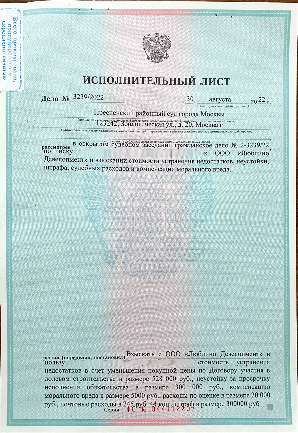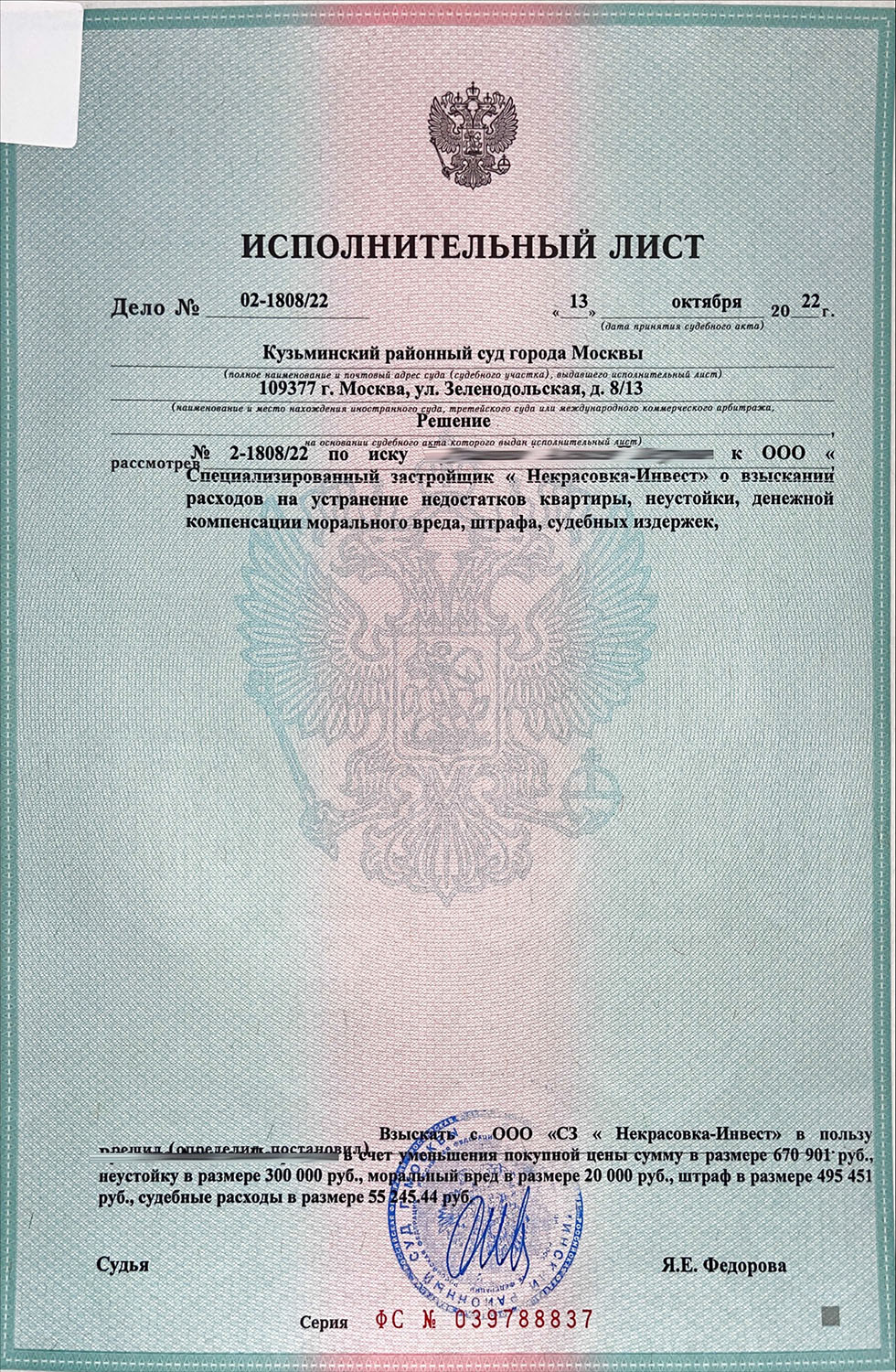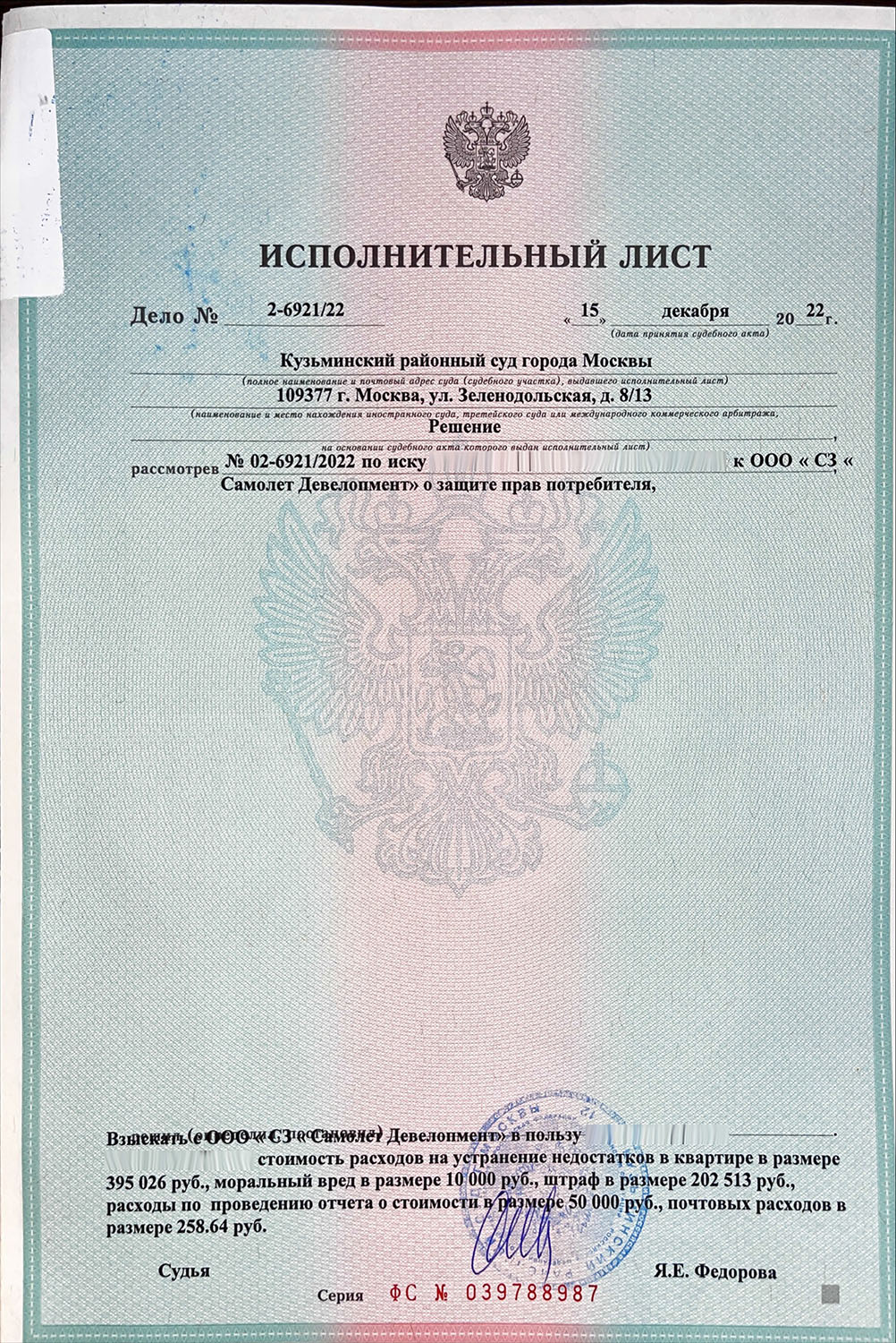 Мы сотрудничаем с профессиональными независимыми экспертами, обладающими всеми допусками. Эксперты без предоплаты проведут осмотр квартиры и составят заключение, которое юристы будут использовать в суде.