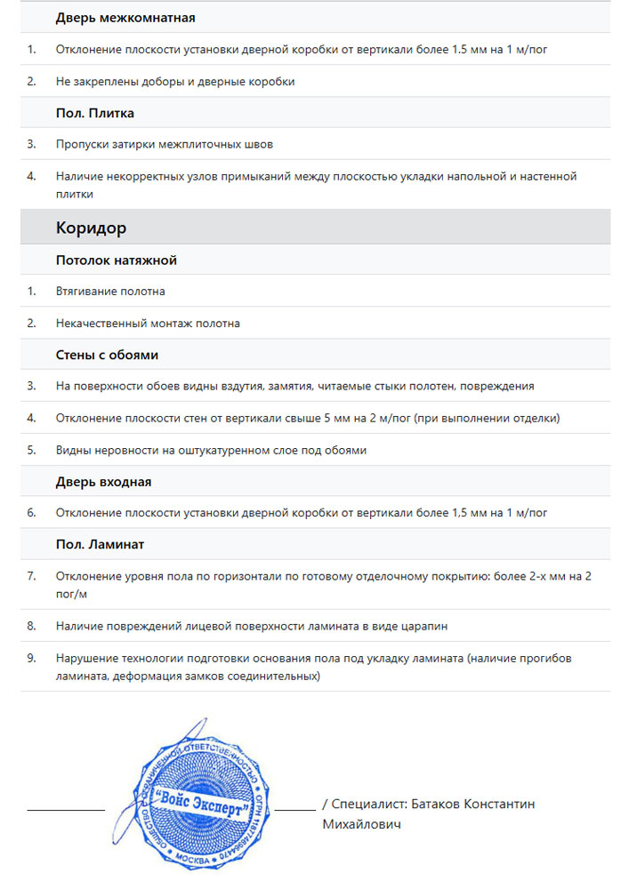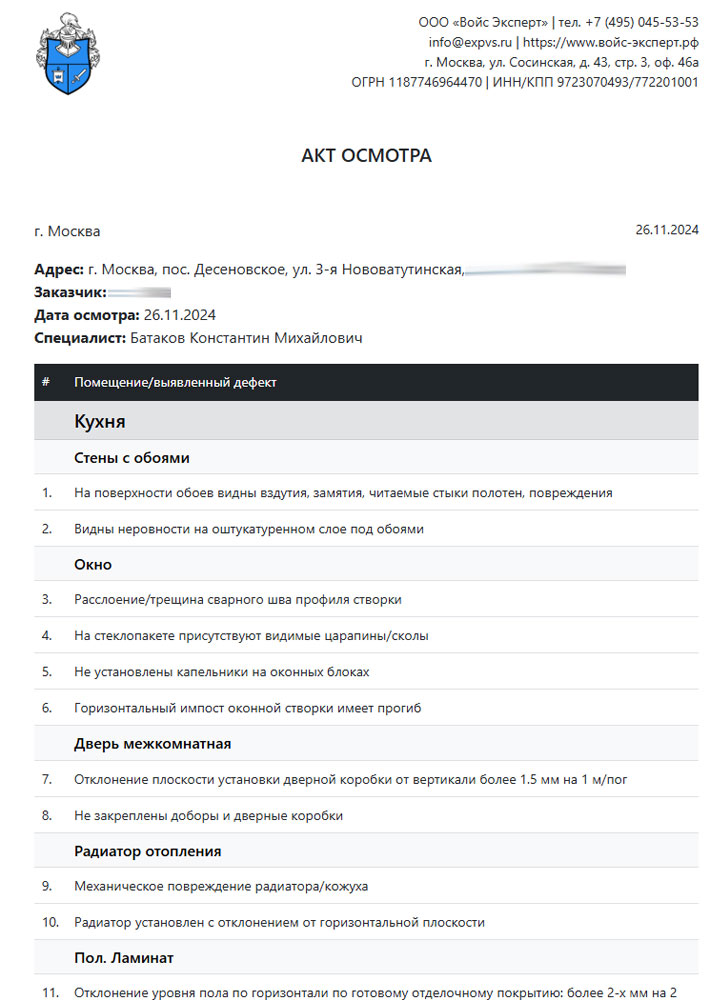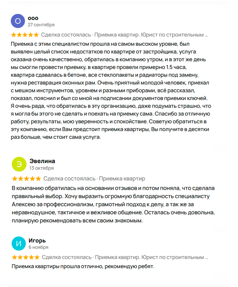 Время проведения приемки квартиры зависит от её площади и состояния. При небольшой площади и минимальном количестве выявленных дефектов процесс приемки проходит быстро, в то время как при наличии большего количества дефектов или увеличенной площади занимает больше времени. Обычно приемка квартиры площадью до 40 м2 занимает около 1 часа, до 70 м2 — примерно полтора часа, до 100 м2 — до двух часов. Если же площадь превышает 100 м2, то осмотр скорее всего займет не менее 2 часов.